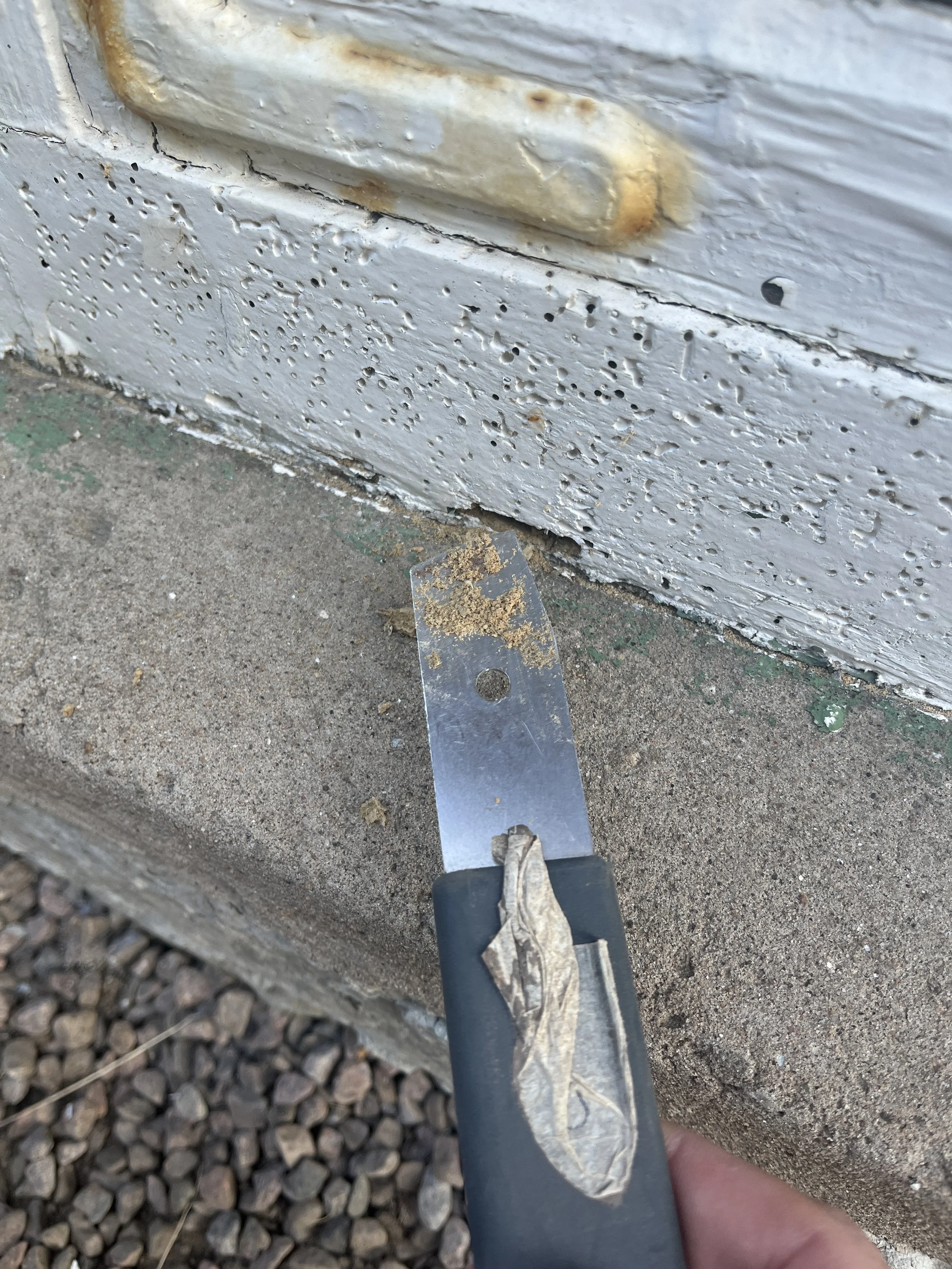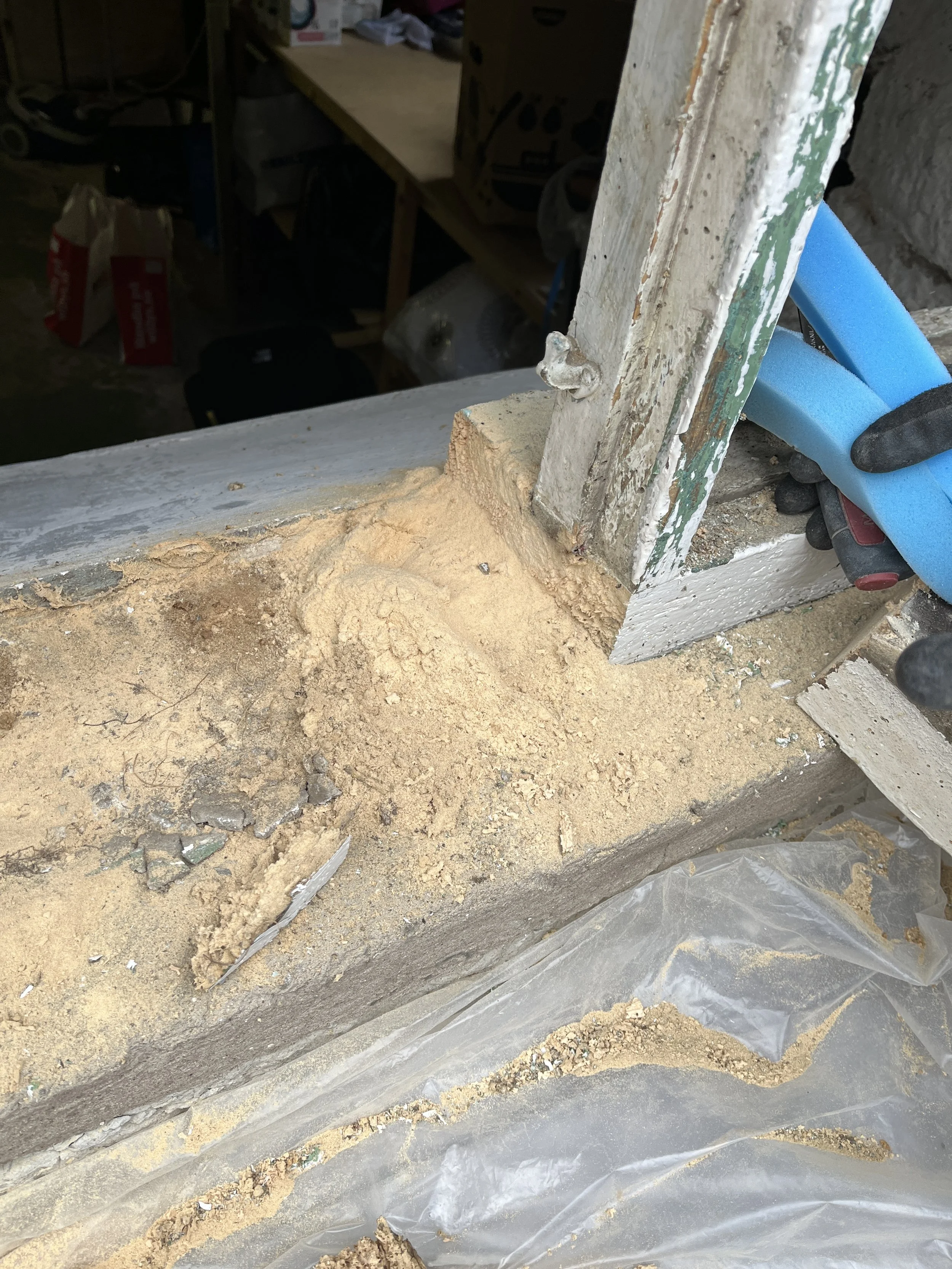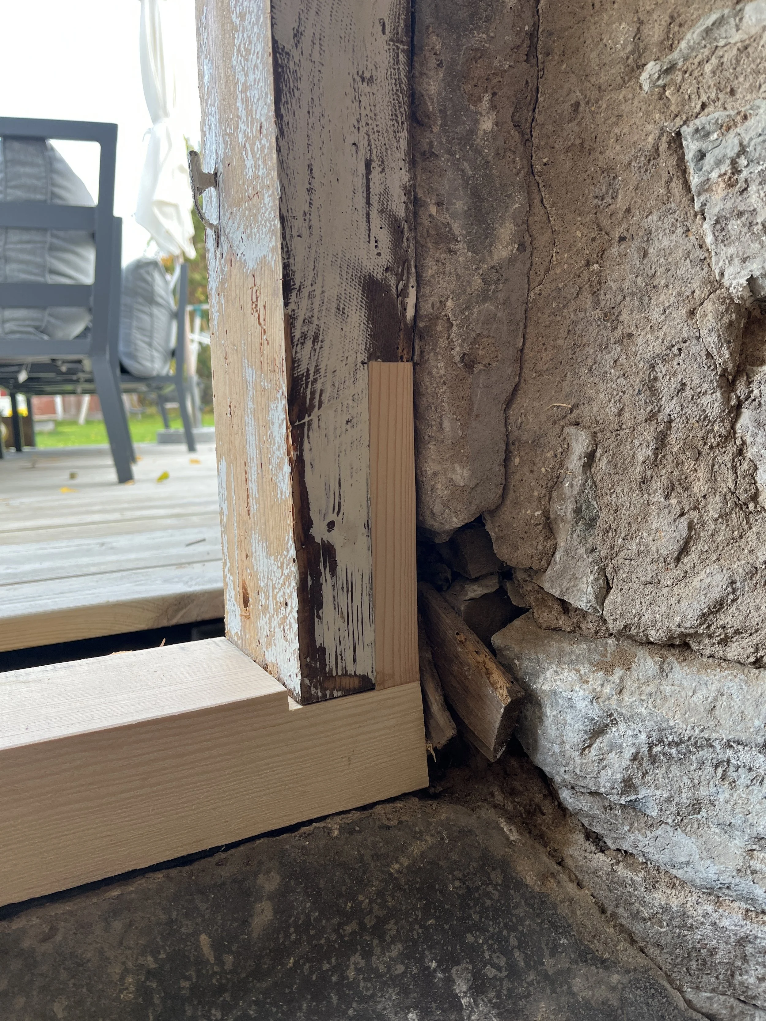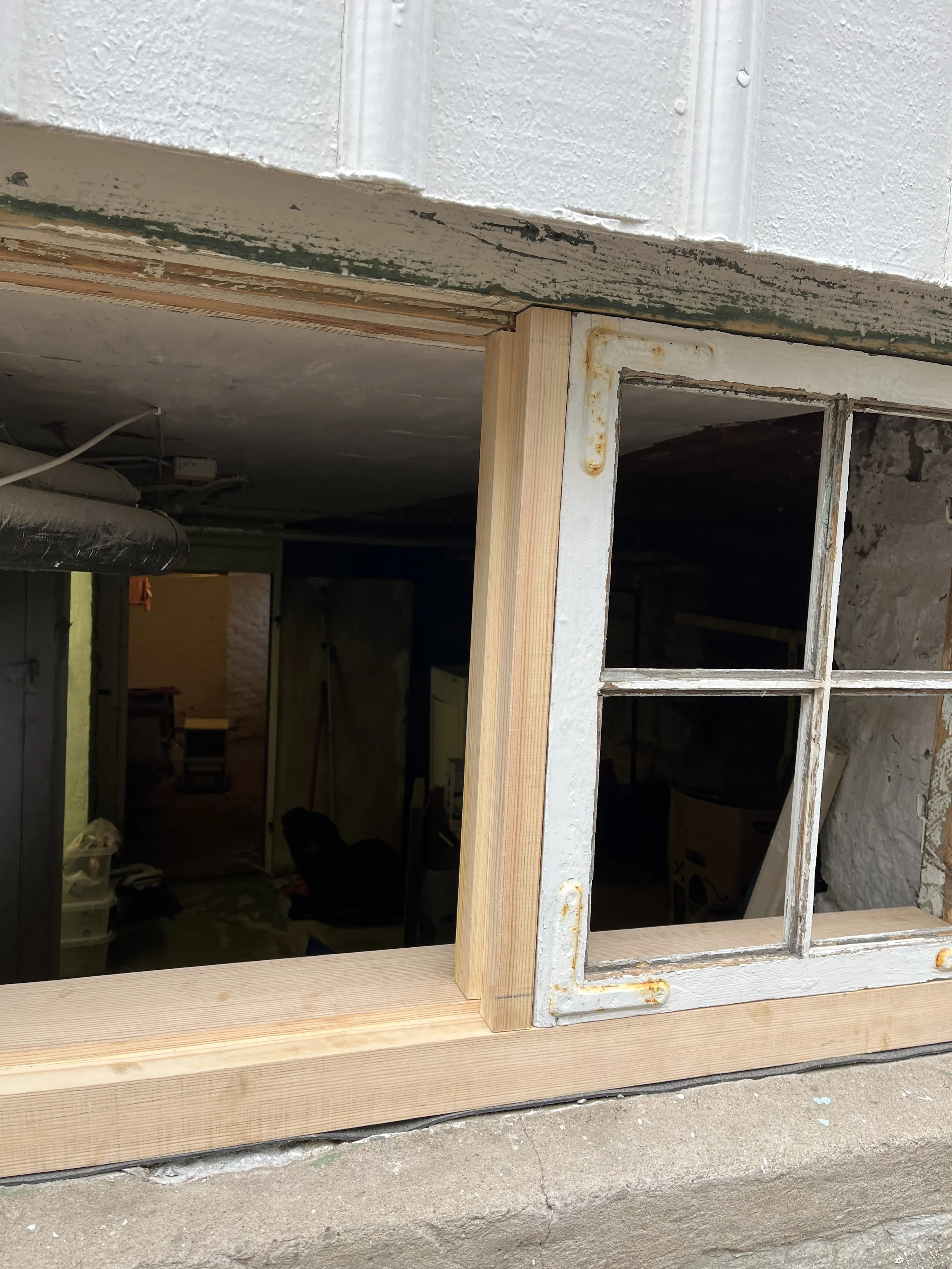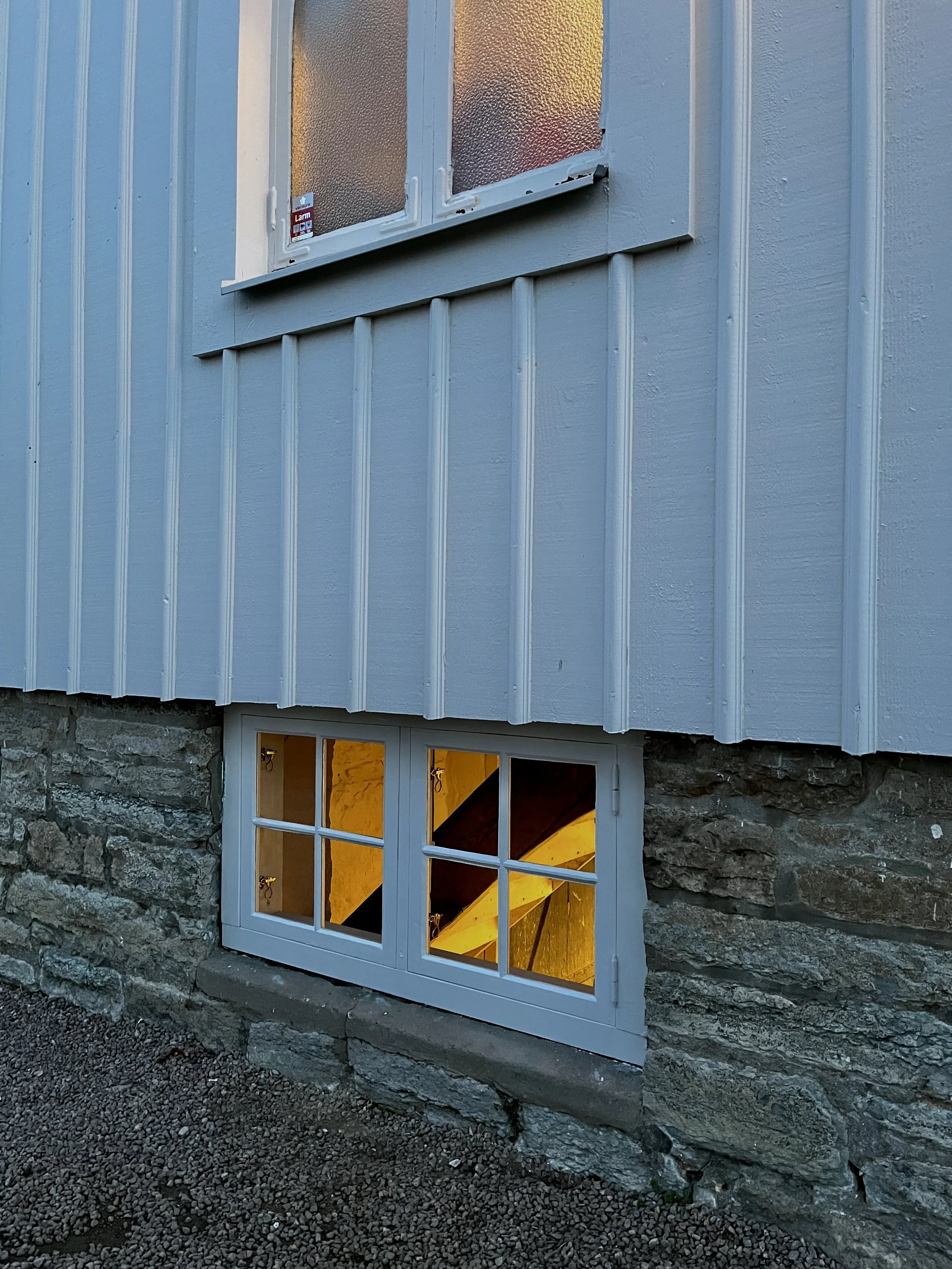 Den här kunden hade problem med envis trägnagare i sina källarfönster. Ett skadedjur som trivs i rötskadatvirke. Här behövde vi byta ut alla angripna karmunderstycken och även en mittpost och delar av bågarna. Några nyare fönster fick spröjs för helheten. Nytt linoljekitt, tre lager med linoljfärg.